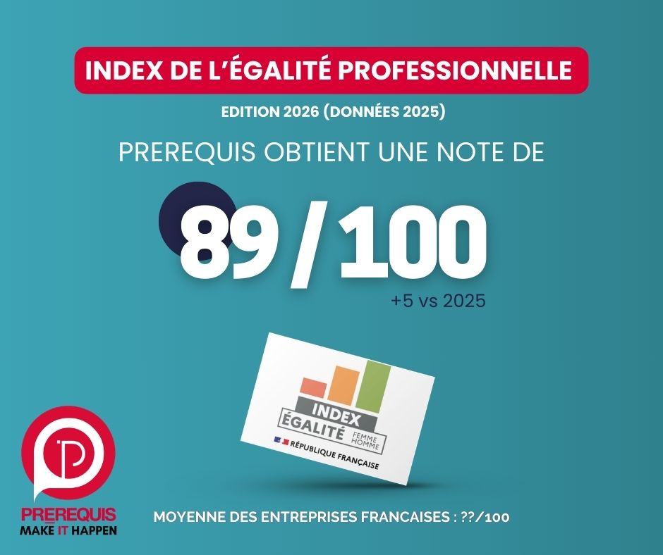 Conformément aux dispositions de la loi Avenir du 05/09/2018 visant notamment à supprimer les écarts de rémunération entre les femmes et les hommes, PREREQUIS publie son index d’égalité femmes-hommes.